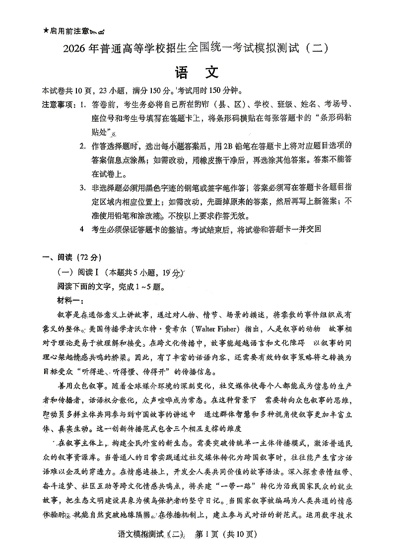 广东省2026年普通高等学校招生全国统一考试模拟测试(二)语文.pdf