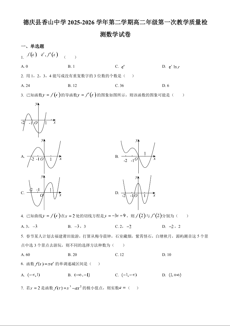 广东省肇庆市重点校2025-2026学年高二下学期4月期中考试 数学.docx