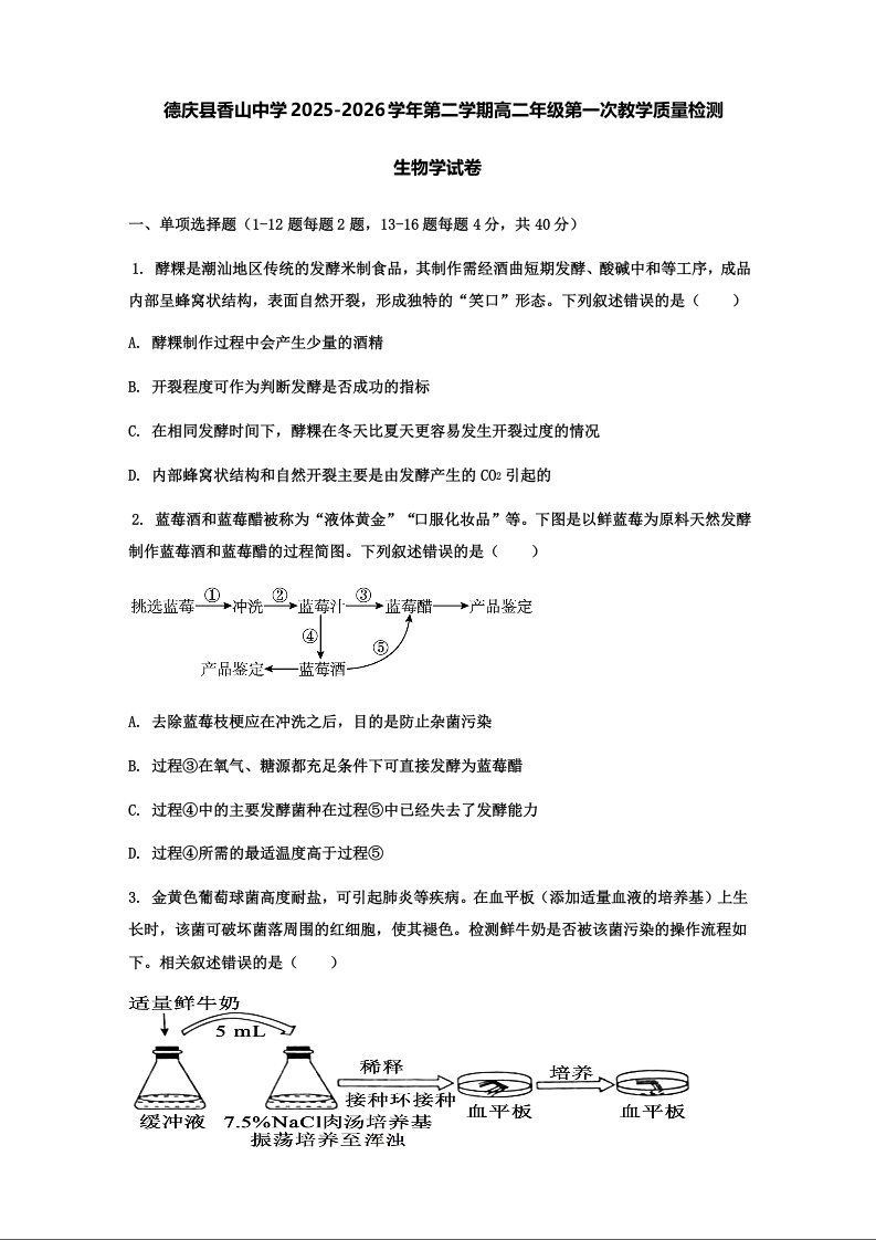 广东省肇庆市重点校2025-2026学年高二下学期4月期中考试 生物.docx