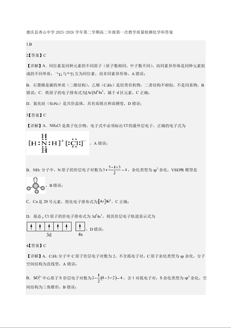 广东省肇庆市重点校2025-2026学年高二下学期4月期中考试 化学答案.docx