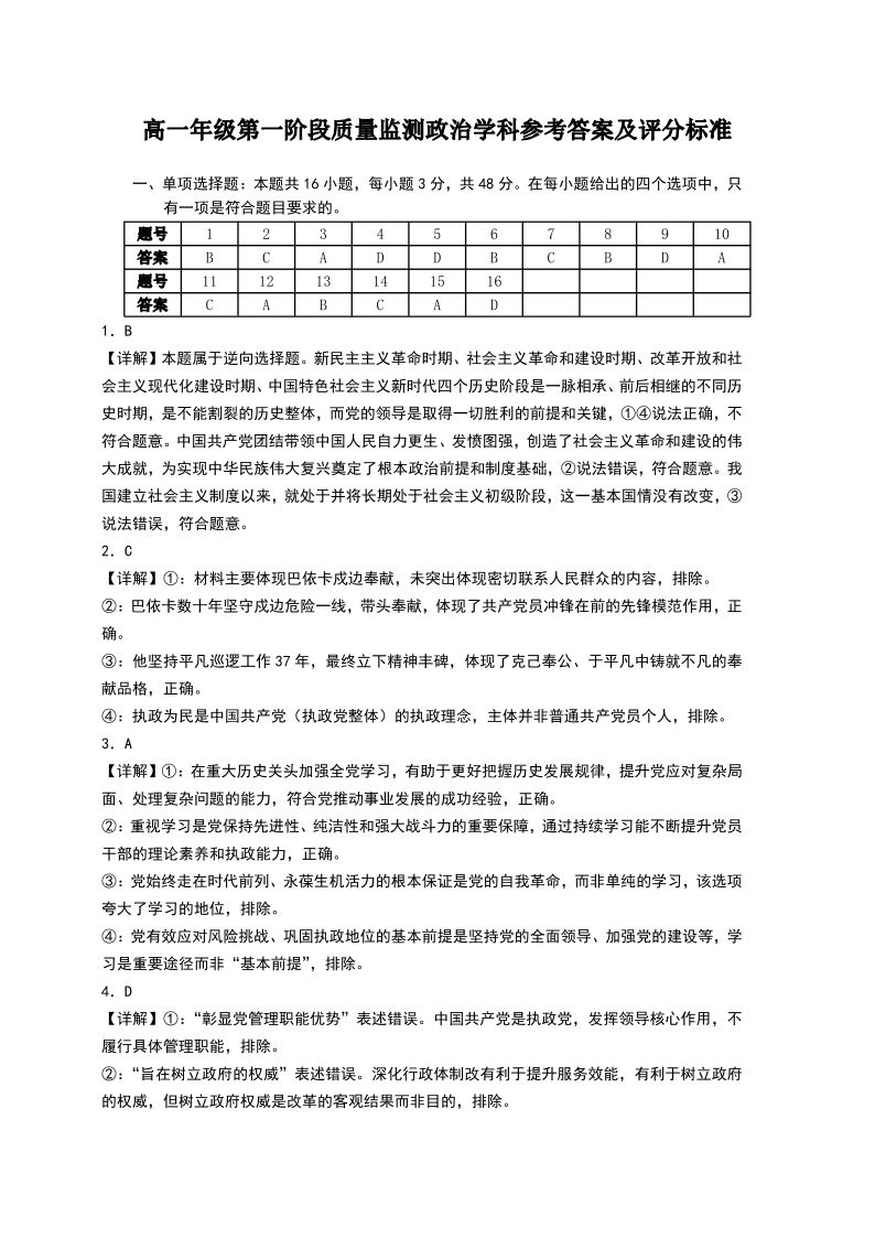 广东省深圳市多校2025-2026学年高一下学期第一阶段质量监测 政治答案.pdf
