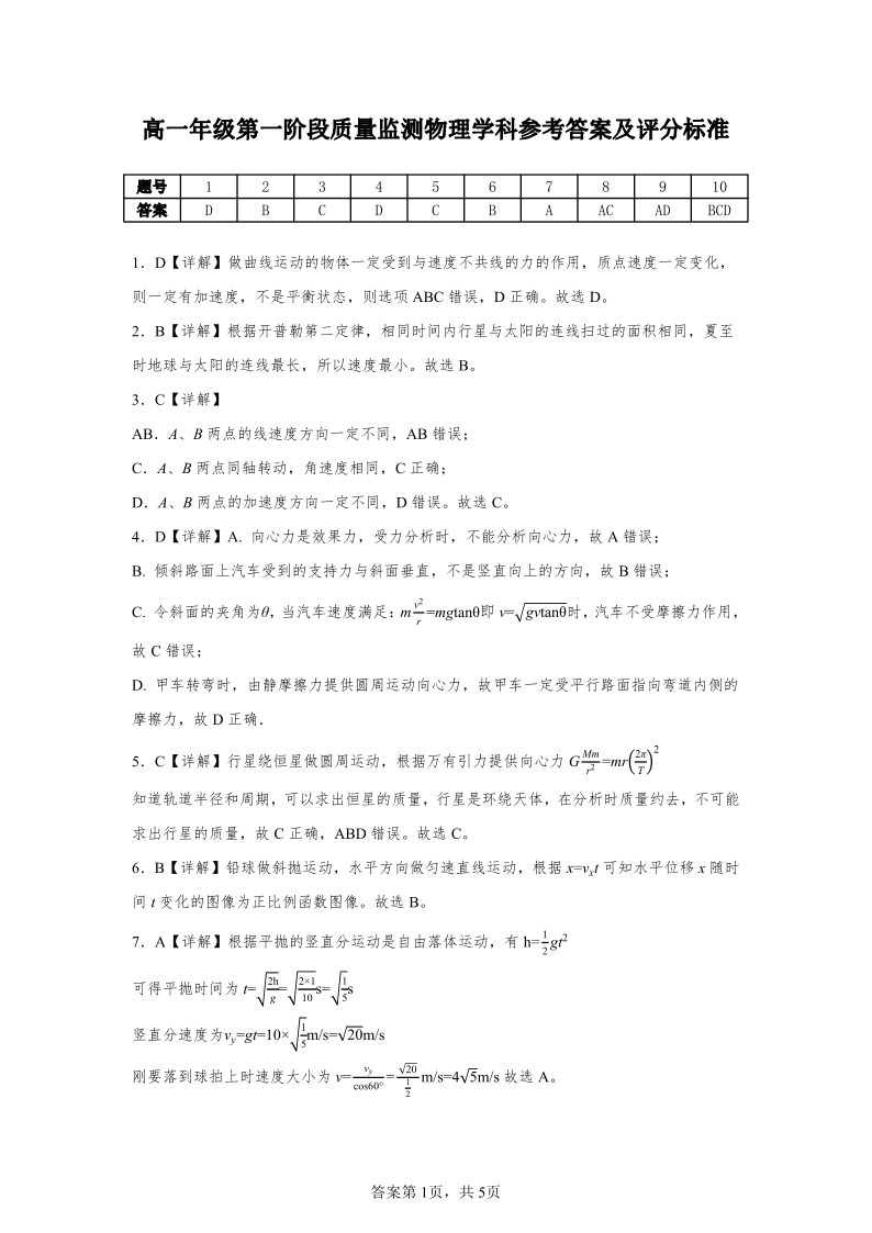 广东省深圳市多校2025-2026学年高一下学期第一阶段质量监测 物理答案.pdf