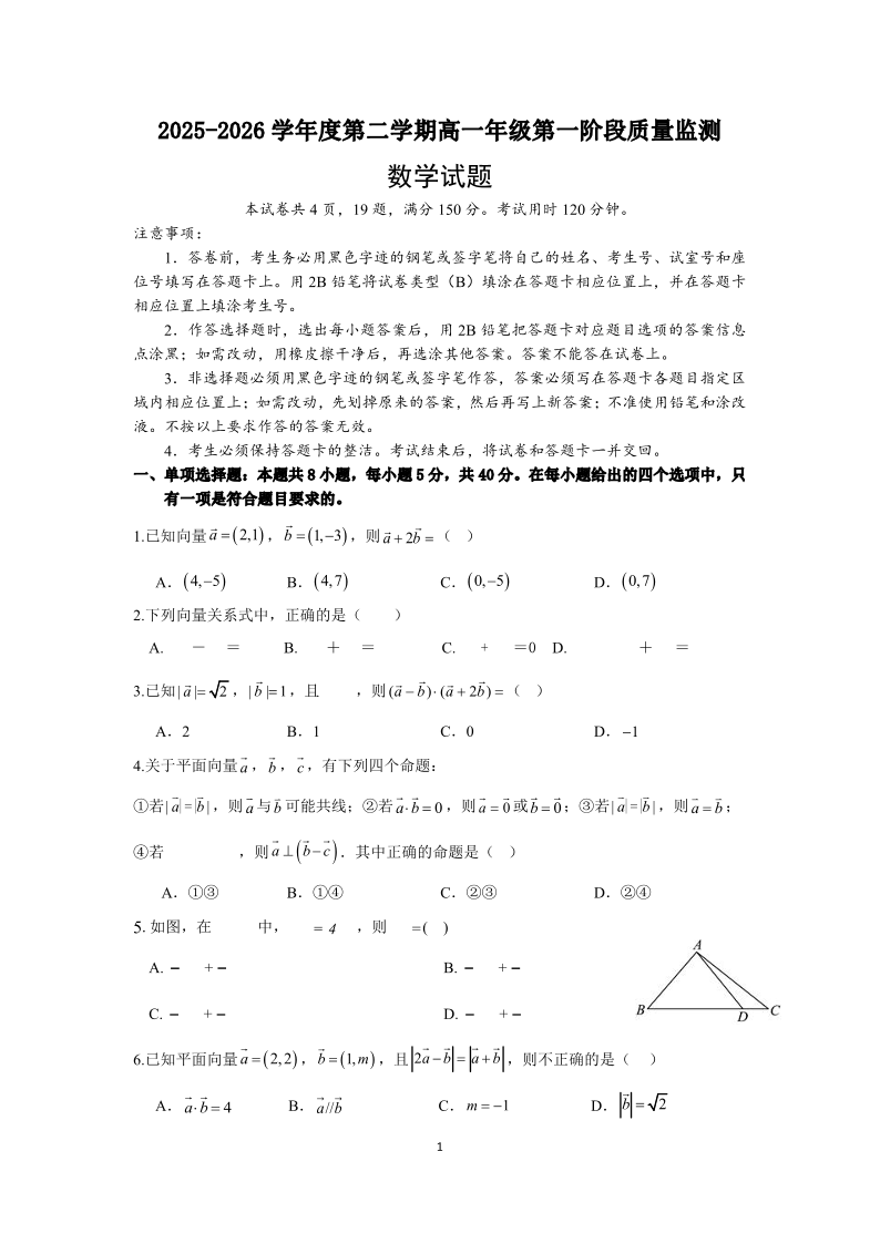 广东省深圳市多校2025-2026学年高一下学期第一阶段质量监测 数学.pdf