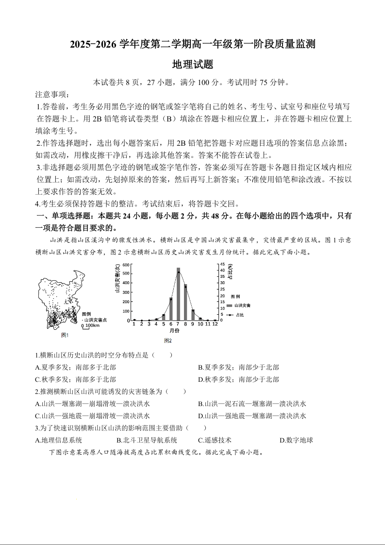 广东省深圳市多校2025-2026学年高一下学期第一阶段质量监测 地理试题(含答案).docx