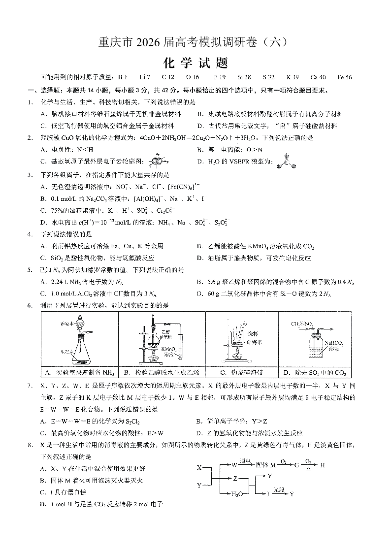 2026年普通高等学校招生全国统一考试康德调研(六)化学试题(含答案).pdf