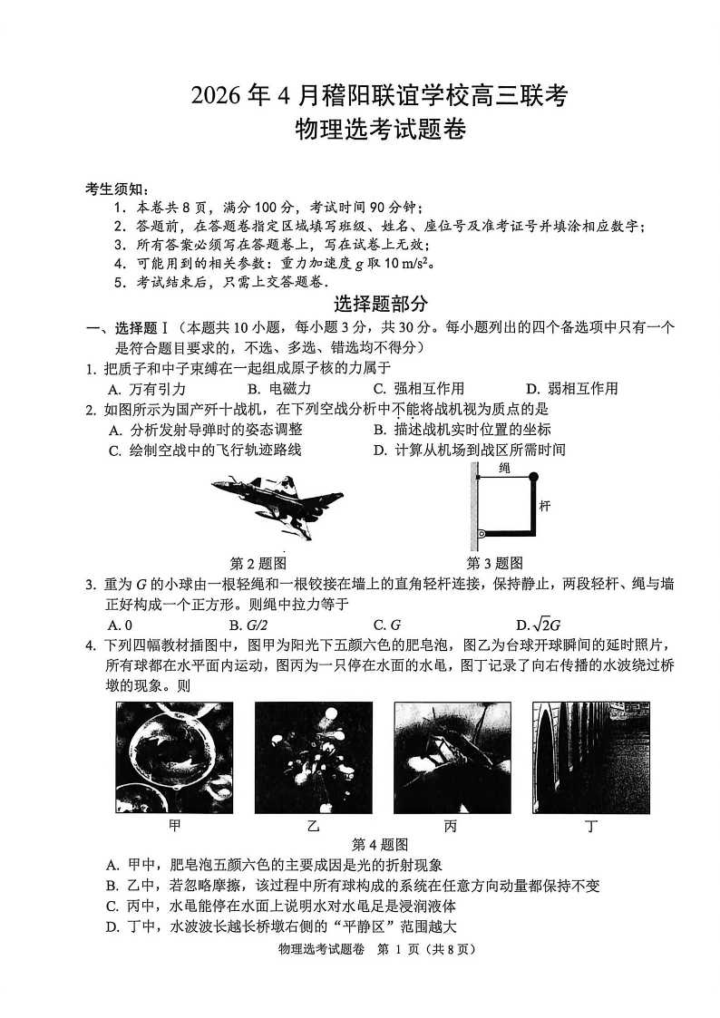 浙江省稽阳联谊学校2026年高三第二学期4月联考 物理.pdf
