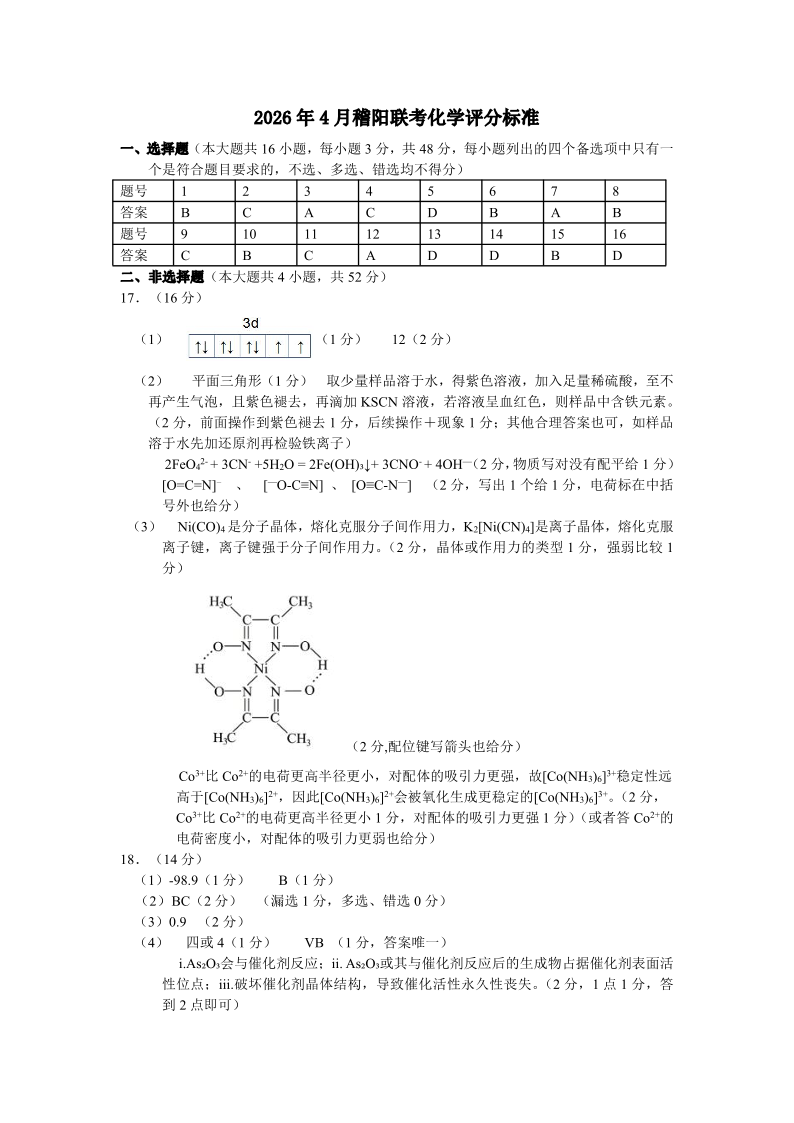 浙江省稽阳联谊学校2026年高三第二学期4月联考 化学答案.pdf