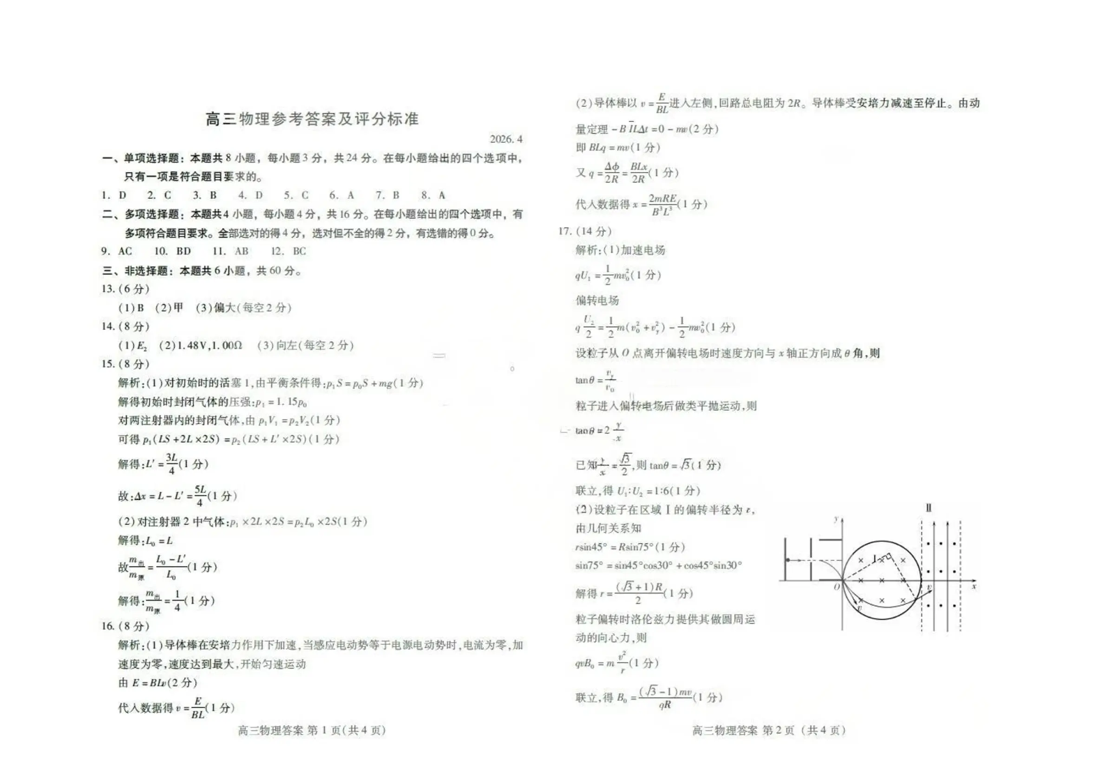 潍坊巿2026年4月高考模拟考试 物理答案.pdf