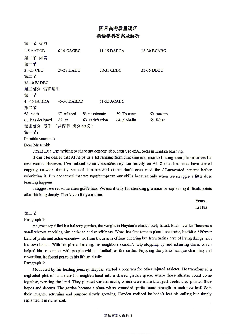 辽宁省协作校2026届高三四月高考质量调研 英语答案.pdf