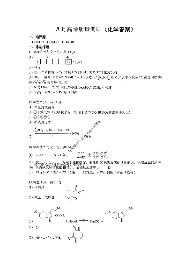 辽宁省协作校2026届高三四月高考质量调研 化学答案.pdf