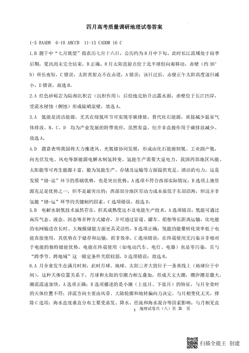 辽宁省协作校2026届高三四月高考质量调研 地理答案.pdf