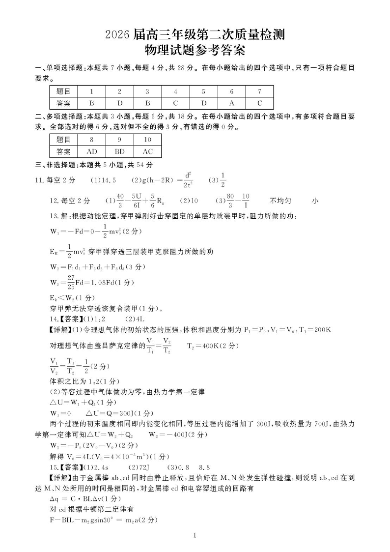 开封市2026届高三年级第二次质量检测 物理答案.pdf