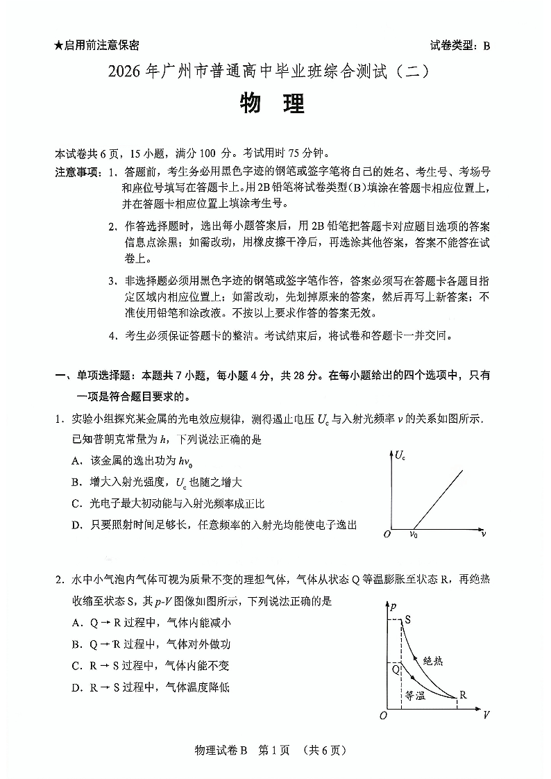 2026年广州市普通高中毕业班综合测试(二)物理.pdf