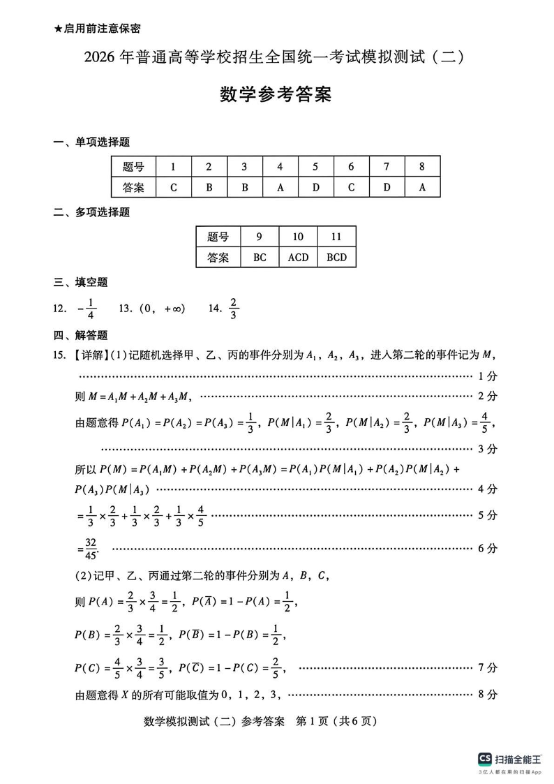 2026年普通高中学业水平选择考模拟测试(二)数学答案.pdf