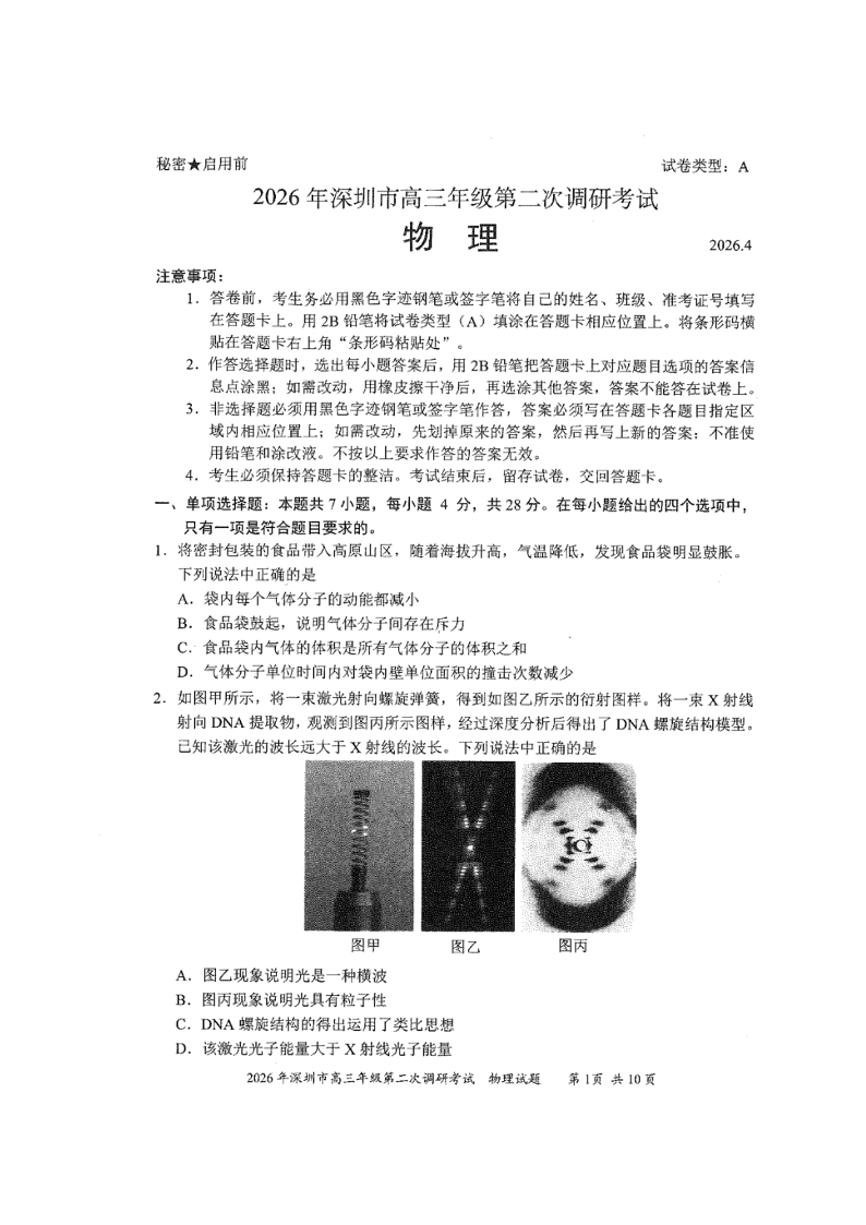2026年深圳市高三年级第二次调研考试 物理.pdf
