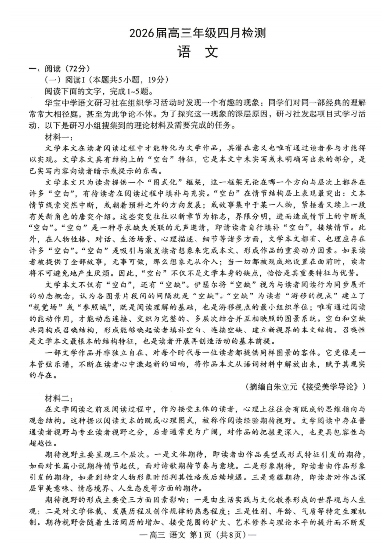 江西省南昌市2026届高三年级四月检测 语文.pdf