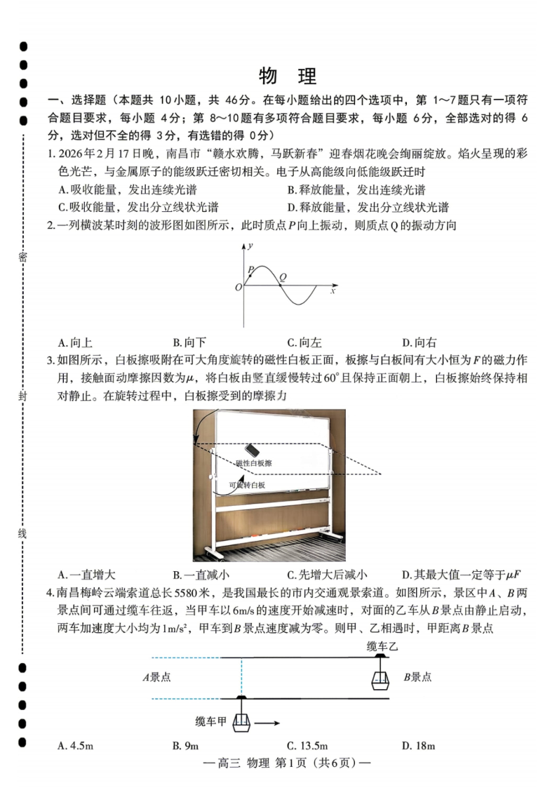 江西省南昌市2026届高三年级四月检测 物理.pdf