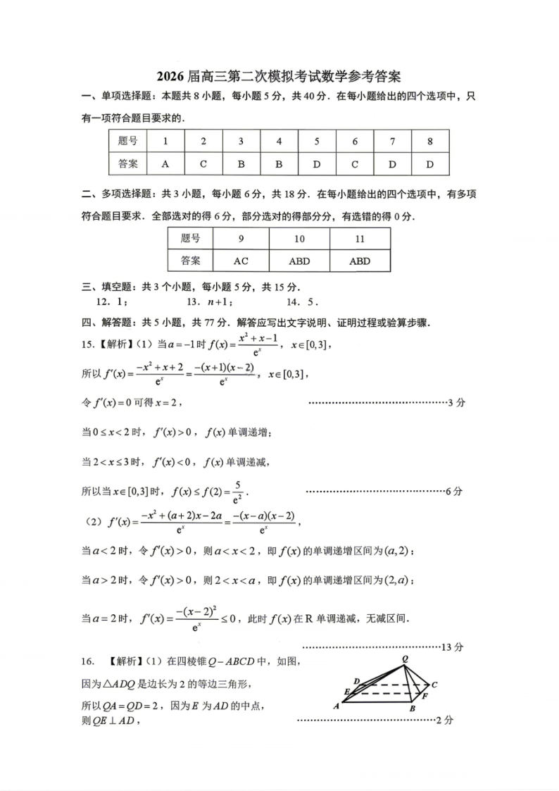 江西省南昌市2026届高三年级四月检测 数学答案.pdf