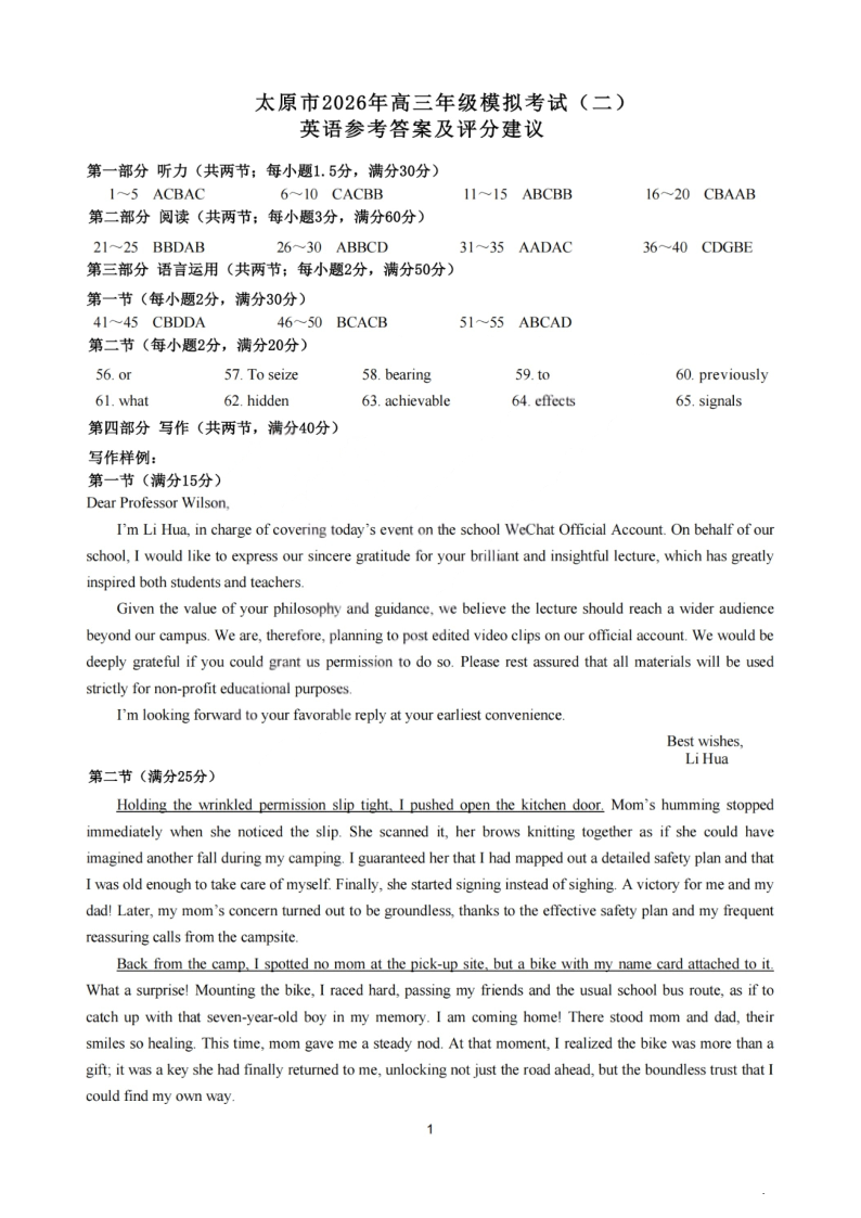 太原市2026年高三年级模拟考试(二) 英语答案.pdf