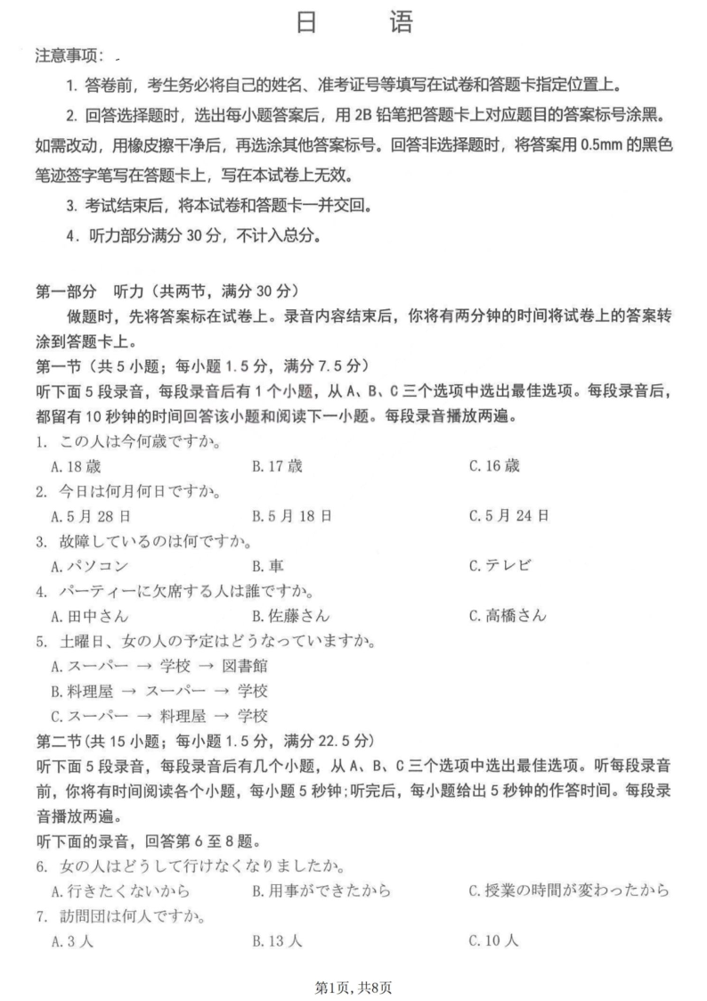 太原市2026年高三年级模拟考试(二) 日语.pdf