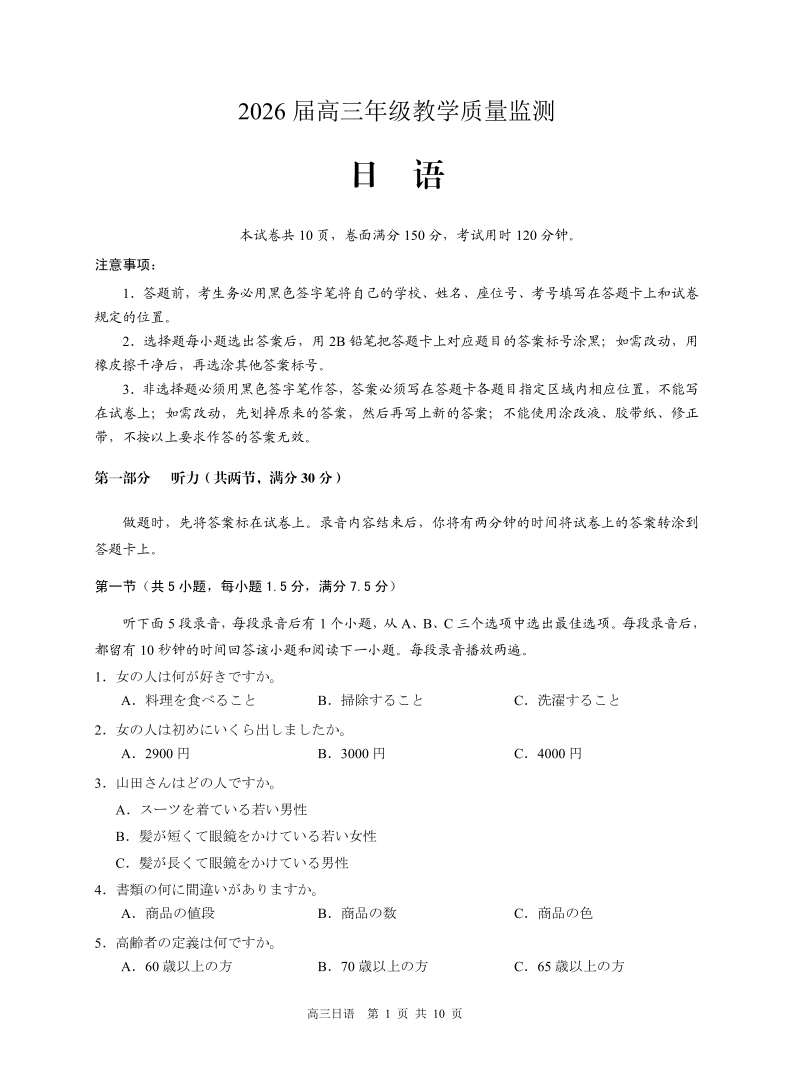 2026年广州市普通高中毕业班综合测试(二)日语.pdf