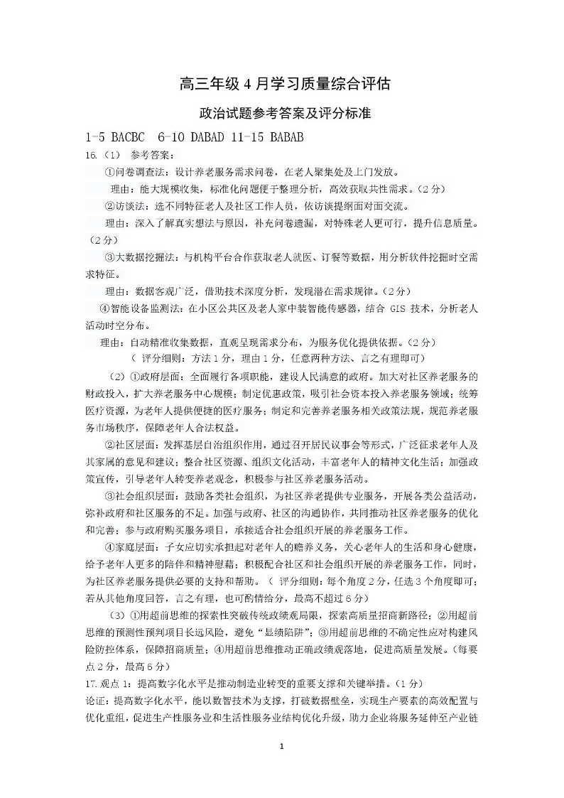德州市高三年级4月学习质量综合评估 政治答案.pdf