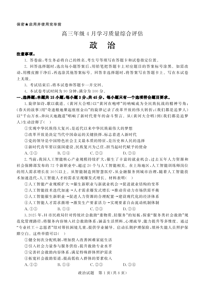 德州市高三年级4月学习质量综合评估 政治.pdf