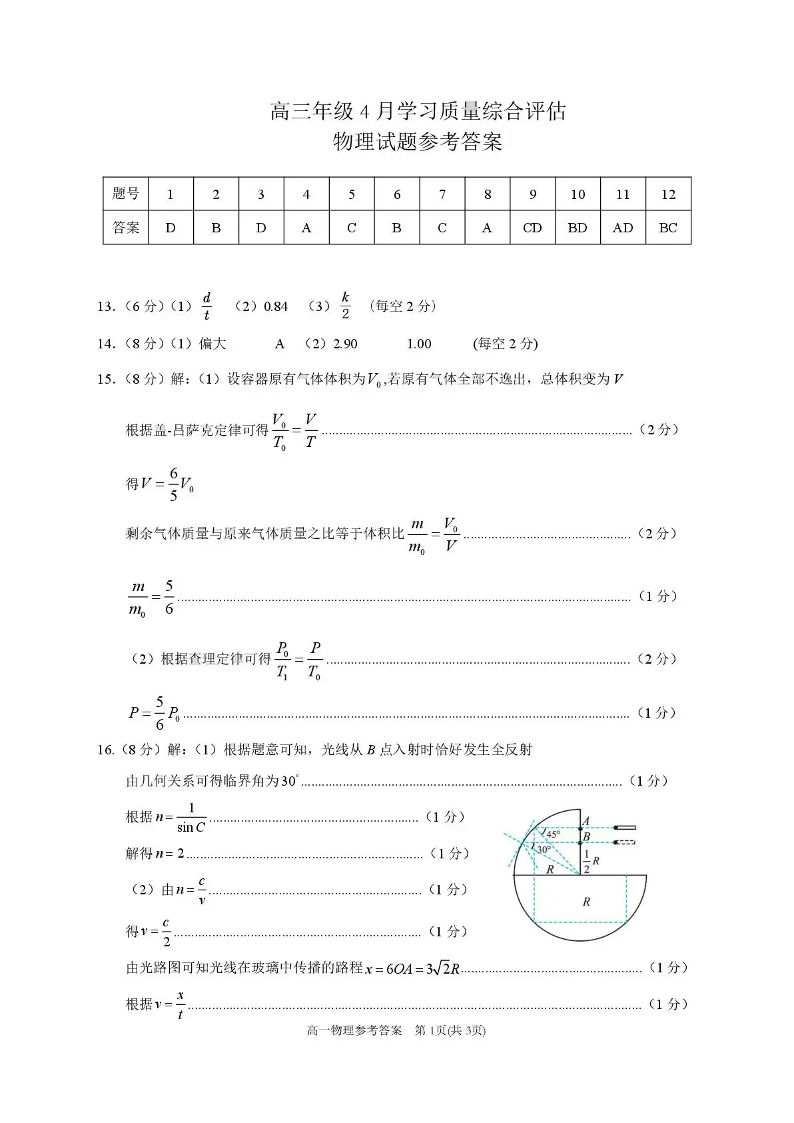 德州市高三年级4月学习质量综合评估 物理答案.pdf