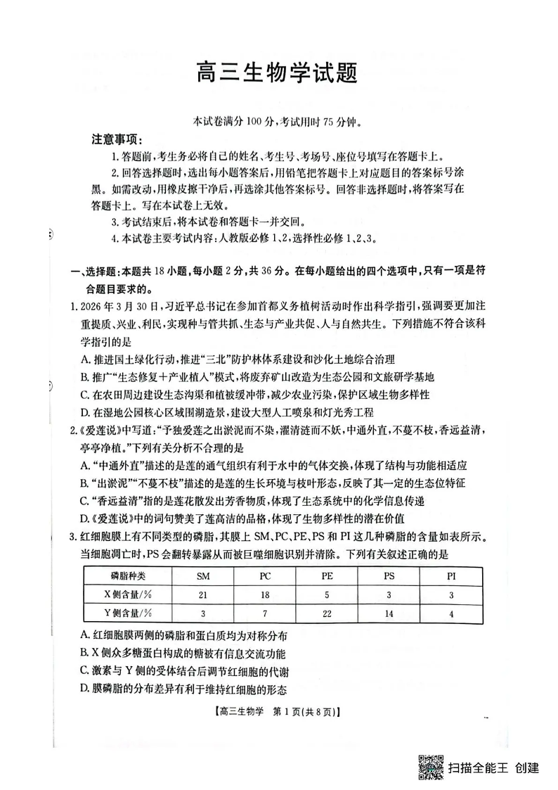 随州市2026届高三下学期4月三模考试 生物.pdf
