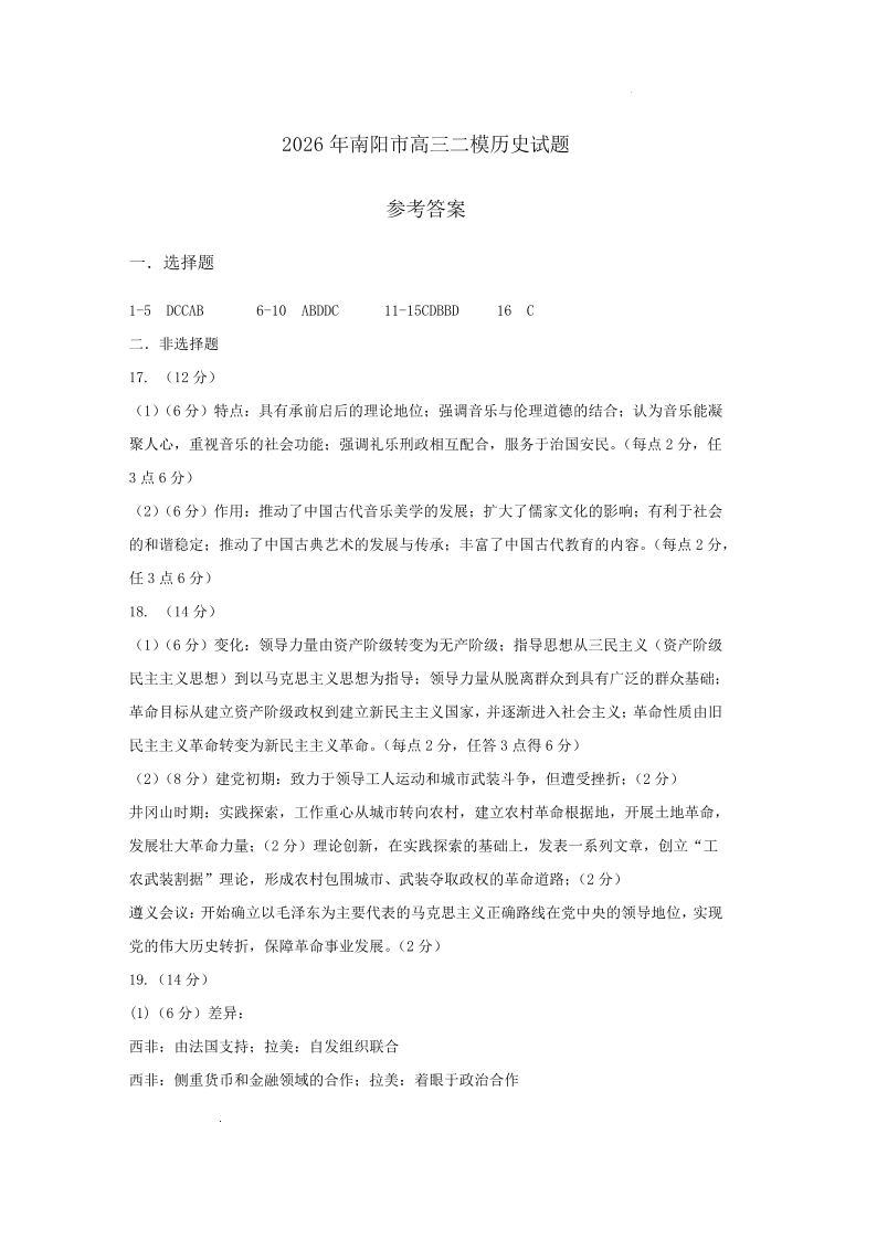 2026年高中毕业年级第二次质量检测 历史答案.pdf