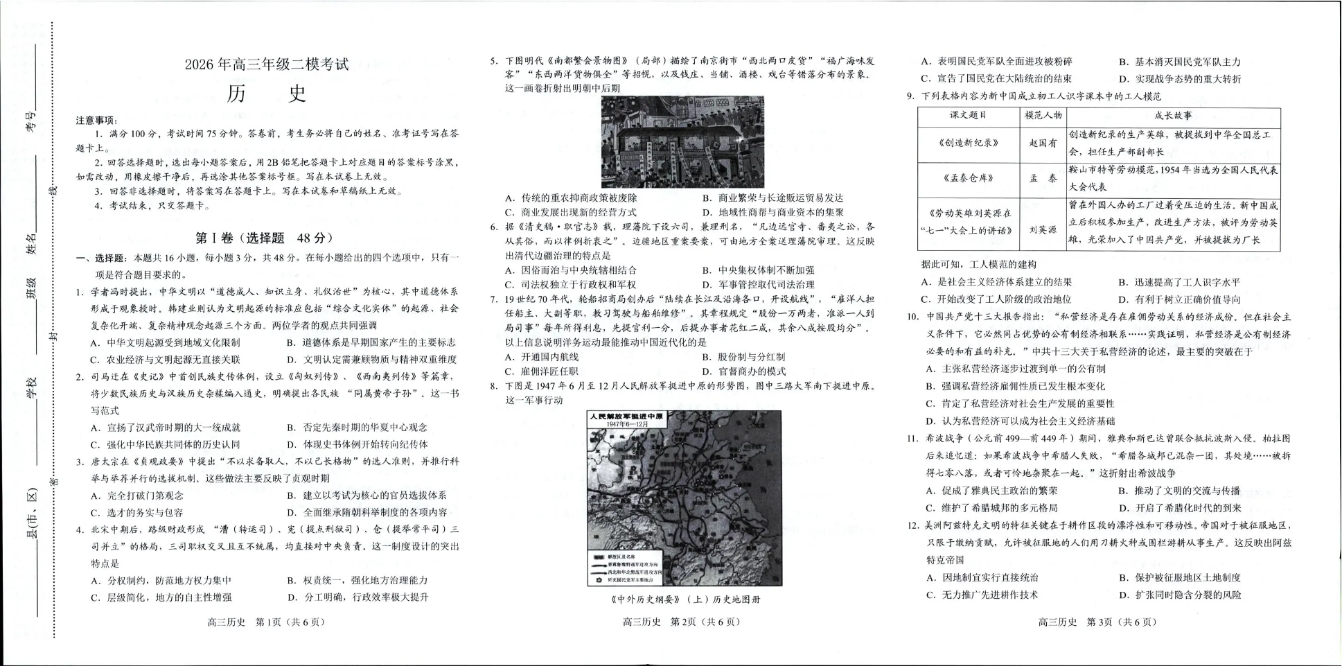 2026年高中毕业年级第二次质量检测 历史.pdf