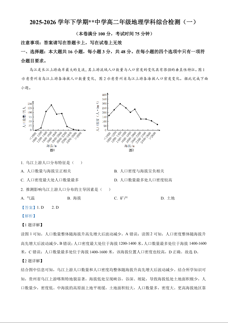 江西省赣州市四校2025-2026学年高二下学期综合检测联考(一)地理答案.docx