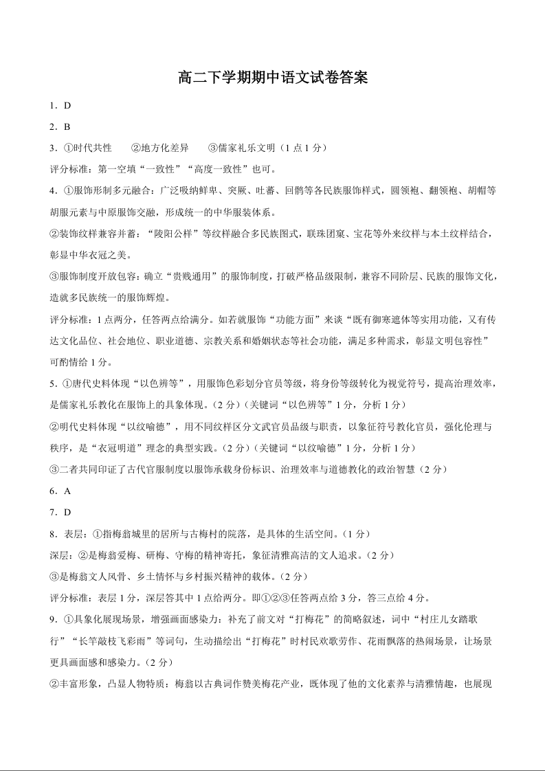 湖北省武汉市洪山高级中学2025-2026学年高二下学期期中考试 语文答案.docx
