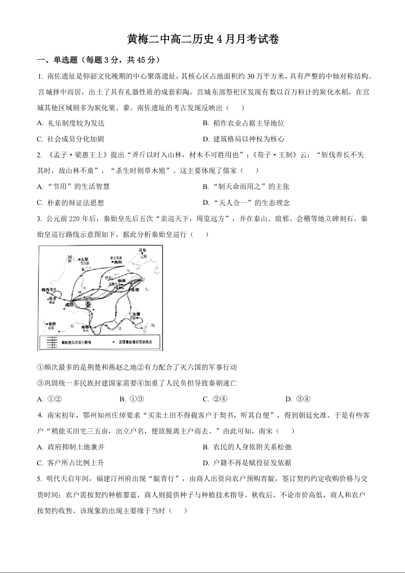 湖北省黄冈市重点校2025-2026学年高二下学期4月月考 历史.docx