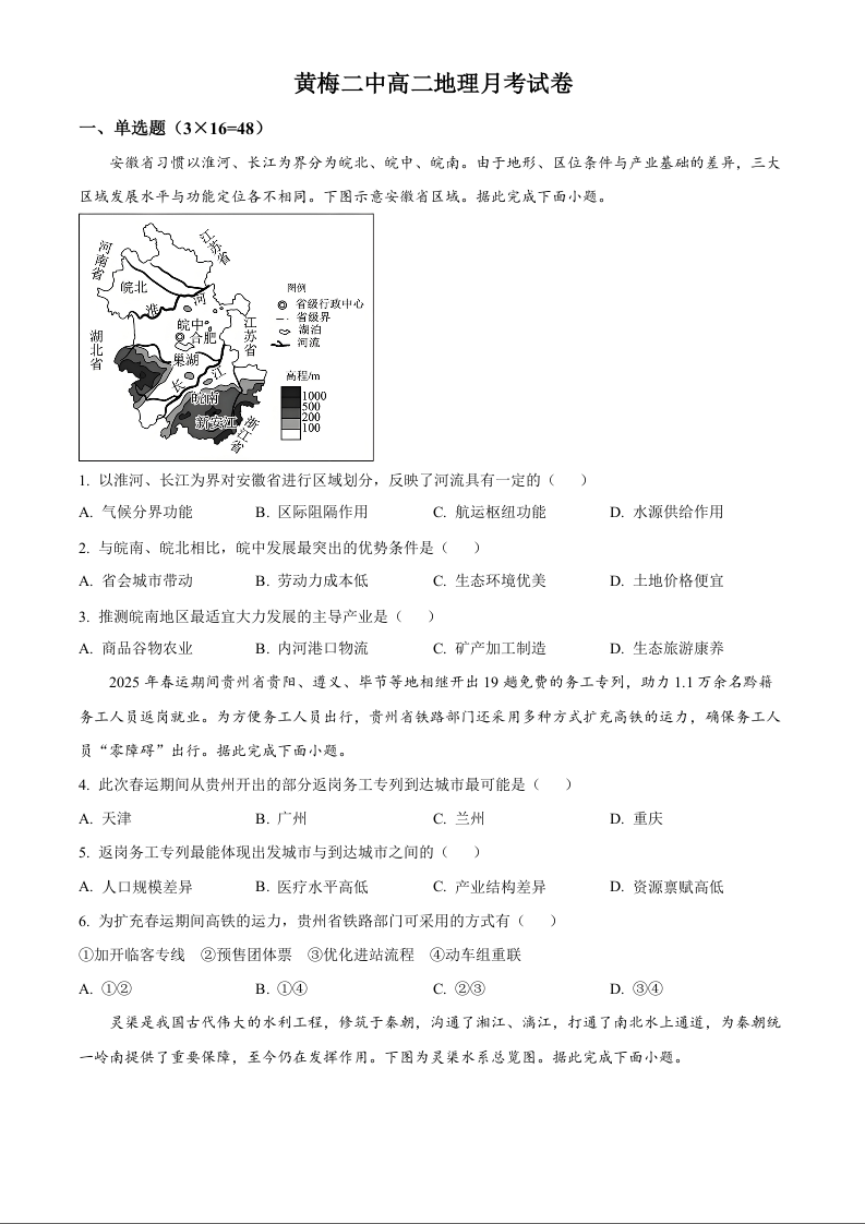 湖北省黄冈市重点校2025-2026学年高二下学期4月月考 地理.docx